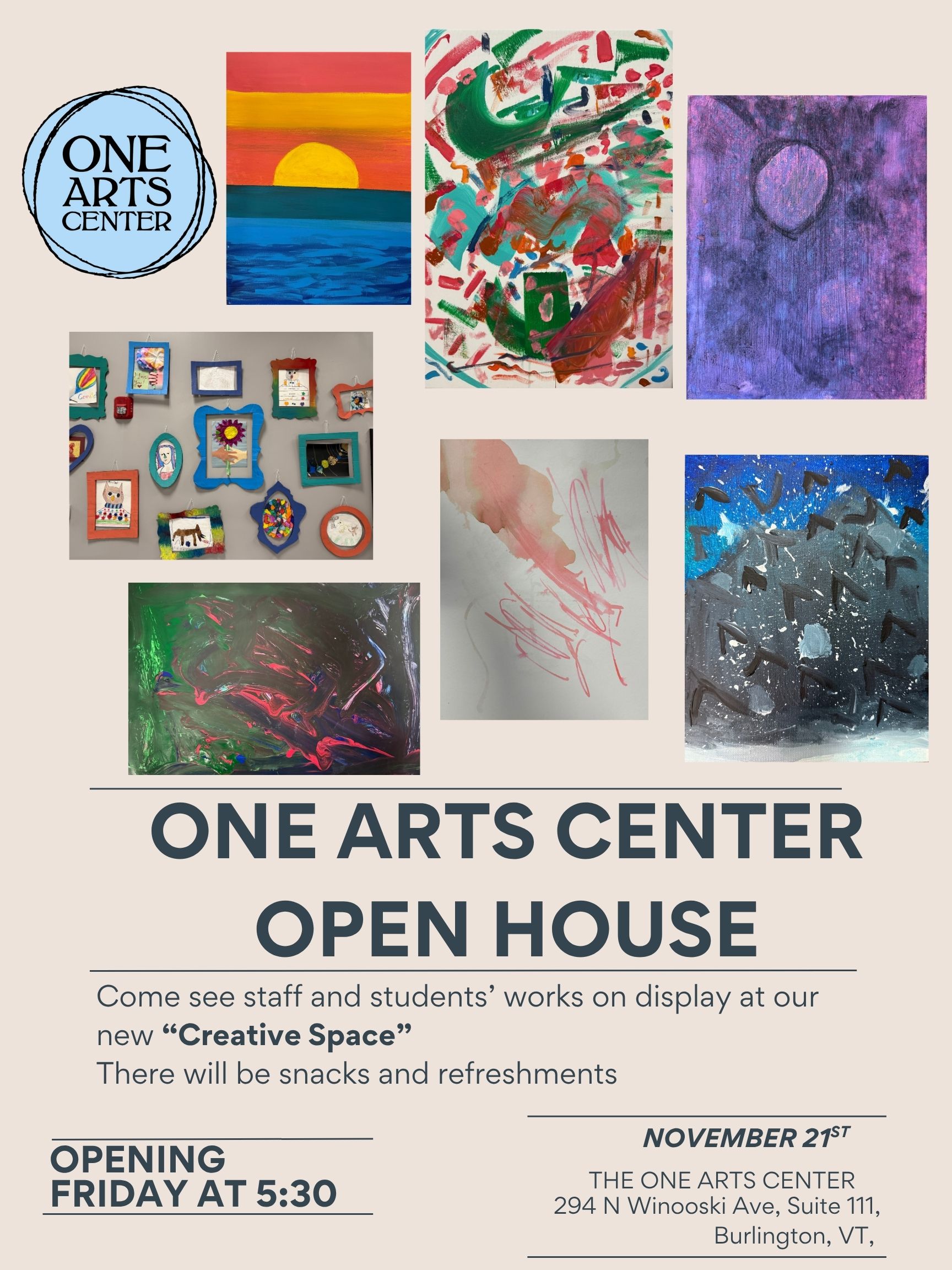 Friday the 21st from 5:30-6:30 pm, we are hosting a gallery-style open house with staff and students’ works on display in our new Creative Space. Come check out our new Art Space, enjoy some snacks, and see what we have been working on!